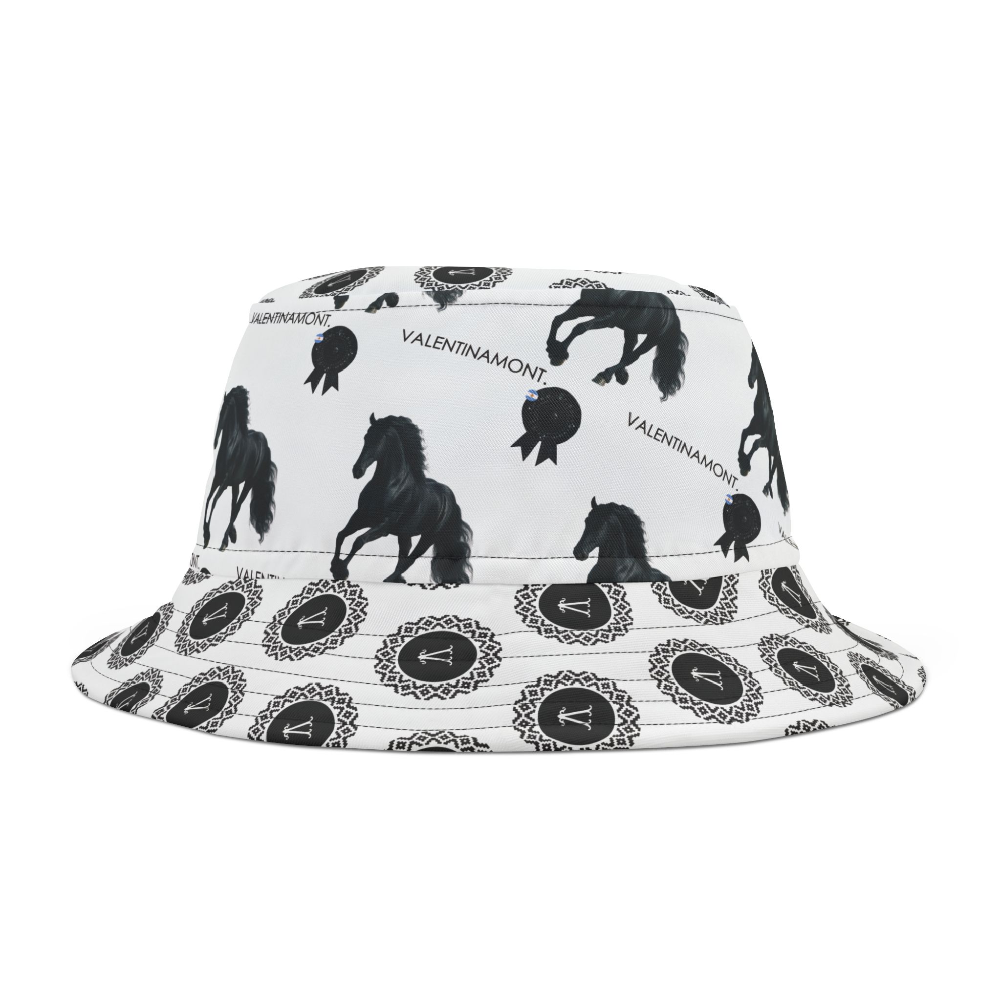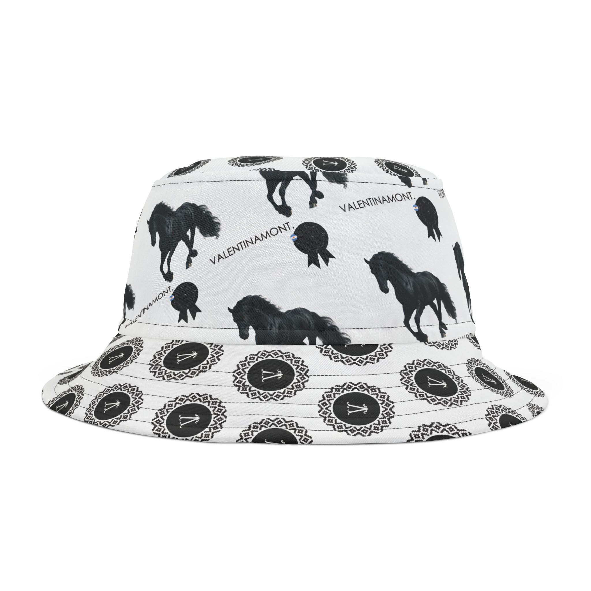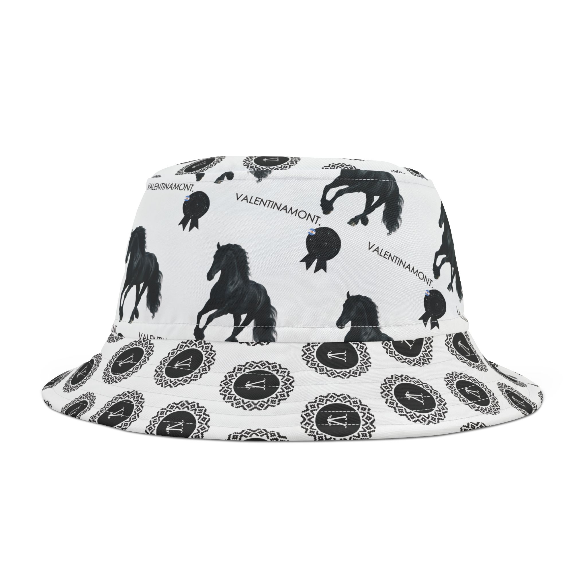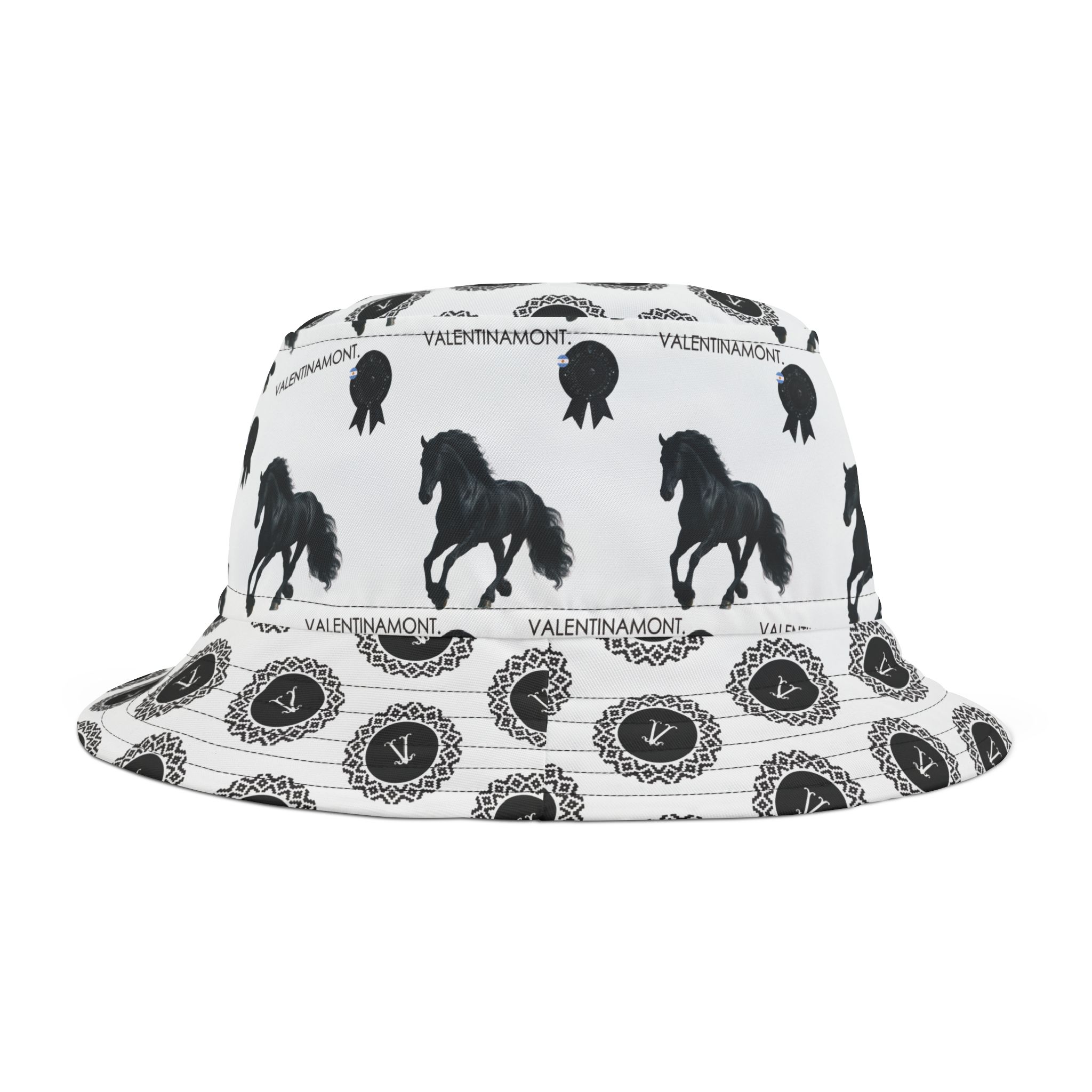 A statement bucket hat with an equestrian and argentine escarapela-coded identity. Summer-ready, street-approved, and unmistakably VALENTINAMONT Monogram and equestrian pattern.