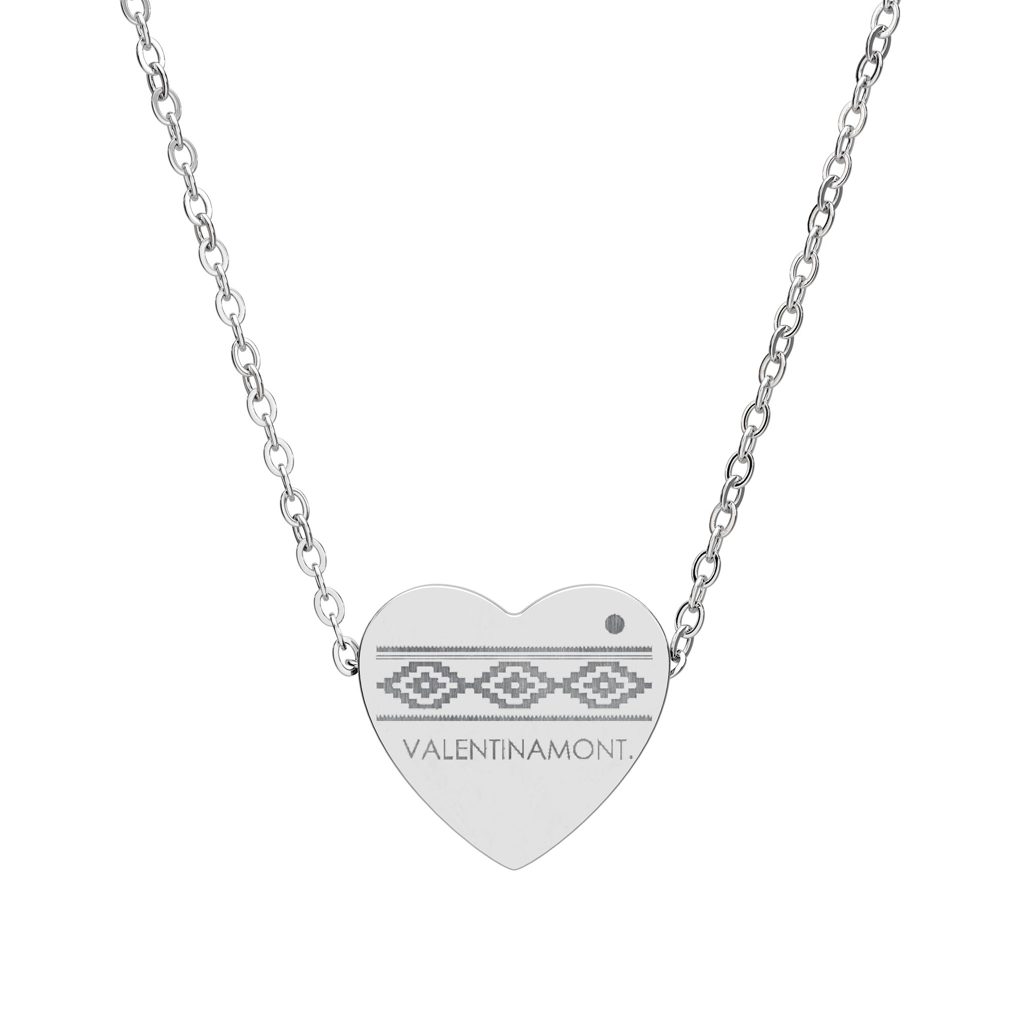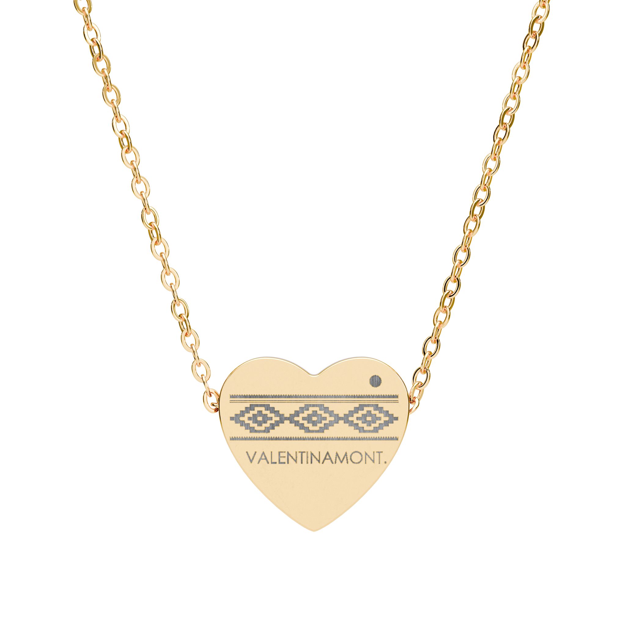 A heart-shaped pendant with an engraved pampa pattern and VALENTINAMONT signature—soft, feminine, and intentional. Inspired by the Argentine heritage.